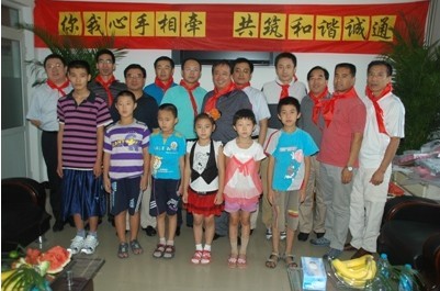 近年來,随着集團快速發展,工作在一線的農民工逐年增多,關心農民工生活的重要性和必要性日益凸現。為此,集團團委舉辦此次“你我心手相牽 共築和諧金年會”主題活動。在中黑北京公司會議室裡,到處洋溢着歡快、和諧的氣氛。志願者們将精心挑選的米奇書包、文具等捐贈給農民工及其子女,孩子們愉快地為志願者逐一佩帶了紅領巾,并描繪了長大後當醫生、當老師的美好夢想。張雷、吳延偉、王華、石國智等志願者紛紛發言,鼓勵孩子們要為自己的夢想而努力,用知識改變命運,希望農民工兄弟安心工作,一起為集團發展做貢獻。來自中黑北京公司儲運部的劉培龍等農民工用極為樸實的語言表達了感激之情,表示要好好培養孩子,長大後做一個對國家和社會有用的人,同時不辜負集團上下的關心,盡心工作,為企業發展出一份力。中黑北京公司總經理郭玉軍、黨委書記劉憲章全程參加活動,表示将以此次活動為新動力,帶領廣大職工創先争優,加快發展。