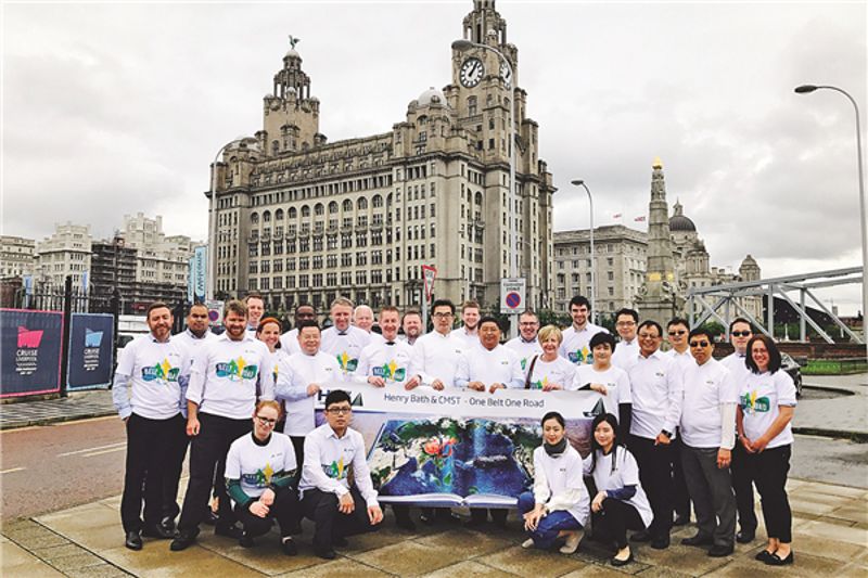 Staff at Henry Bath in Liverpool show their support for the Belt and Road Initiative. Photo provided to china daily